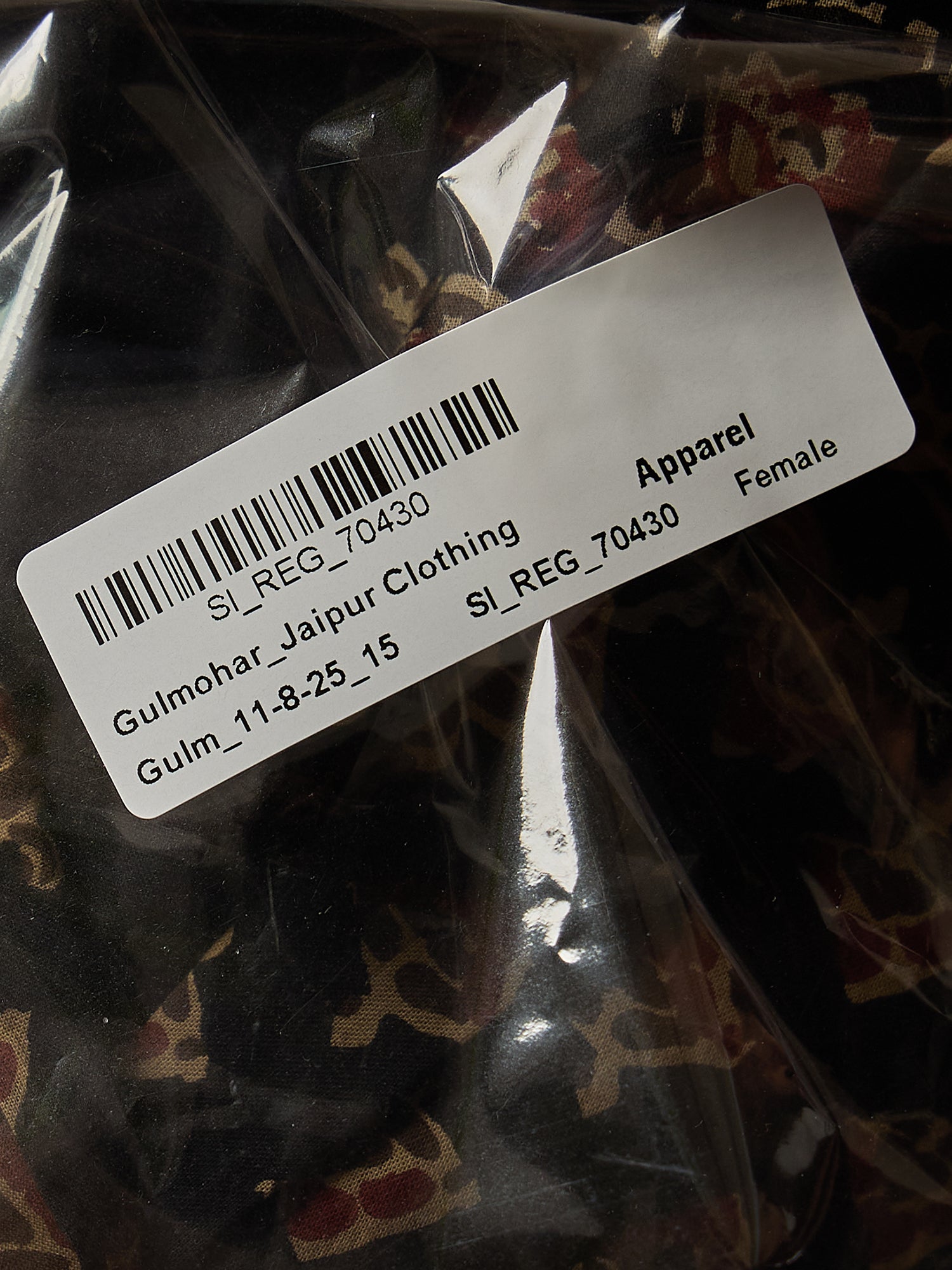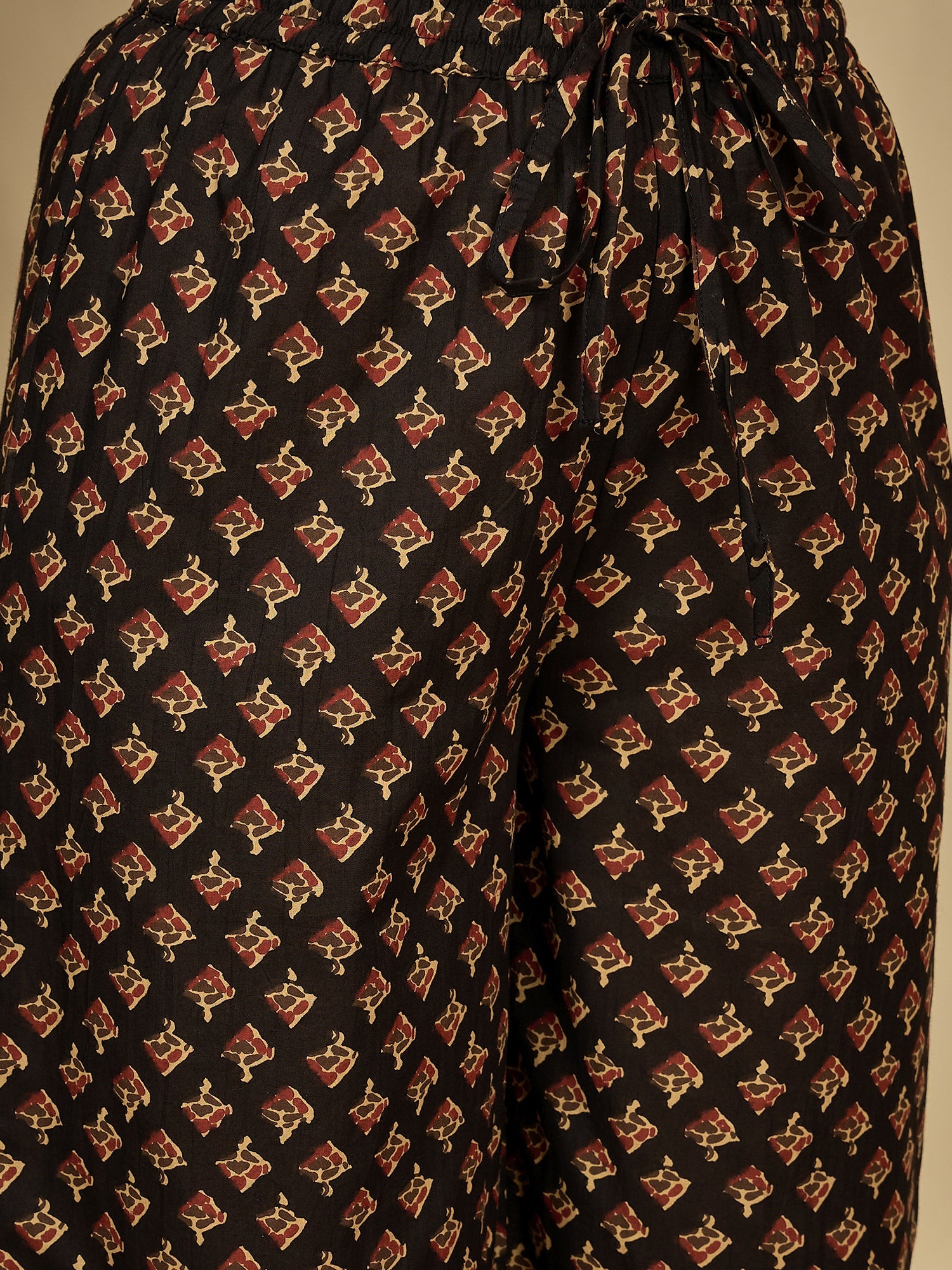 Enhance your ethnic wardrobe with the Gulmohar Jaipur Cotton Calf Length Printed Sleeveless Collard Straight Kurta Suit Set. Designed in a timeless black hue, this kurta suit set blends simplicity with sophistication. Made from premium cotton fabric, it offers all-day comfort and breathability. The collared neckline and sleeveless design bring a modern twist to the traditional silhouette, while the straight cut ensures a flattering fit for all body types. Perfect for casual outings, office wear, or festive occasions.