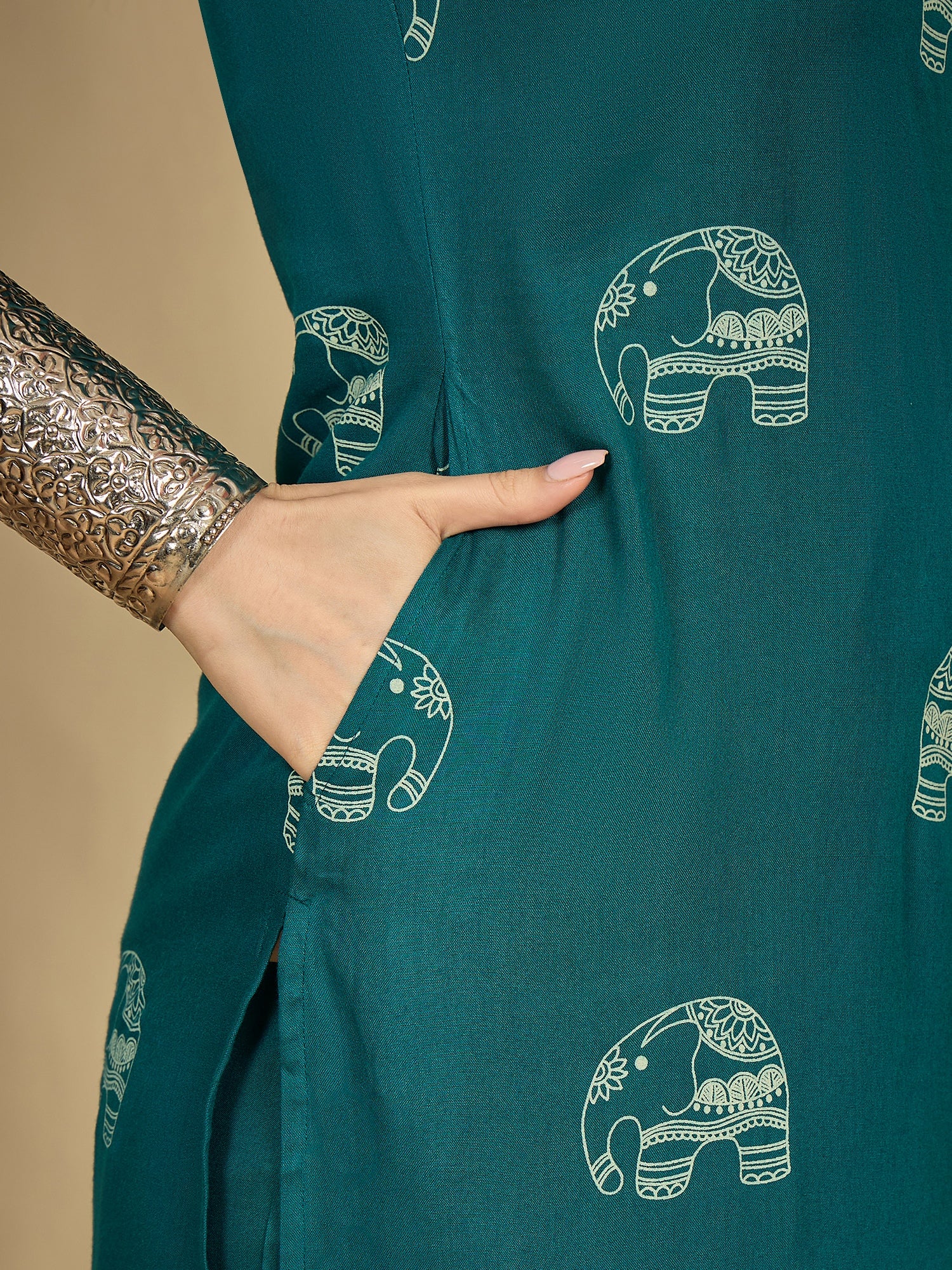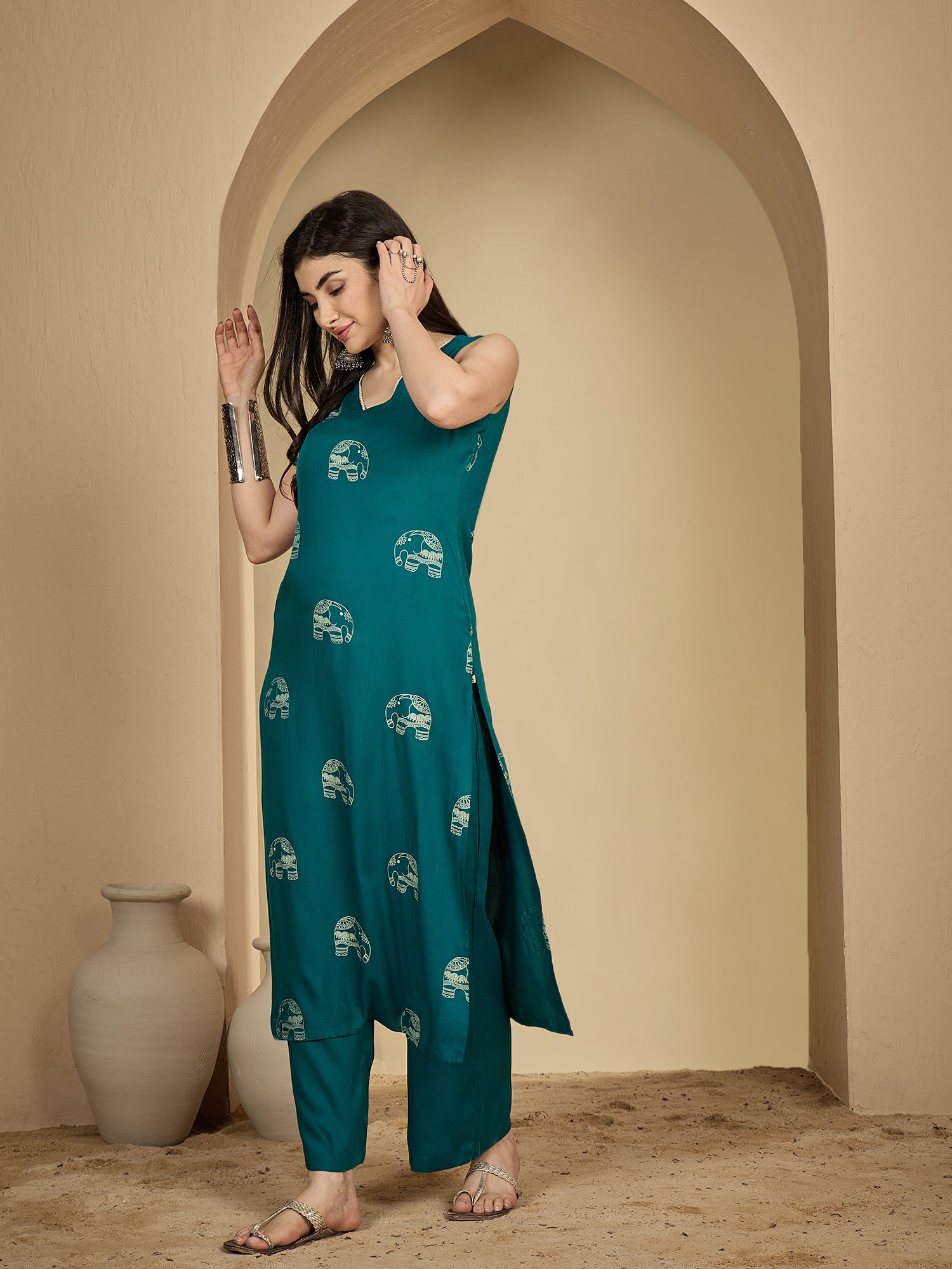 Add a vibrant charm to your ethnic collection with the Gulmohar Jaipur Rayon Calf Length Printed Sleeveless V-Neck Straight Kurta Suit Set. Crafted from high-quality rayon fabric, this coral-colored set ensures both comfort and sophistication. The sleeveless design and V-neckline offer a modern touch, while the straight silhouette gives a sleek and elegant look. Adorned with subtle prints, it’s ideal for casual outings, festive gatherings, or office wear.