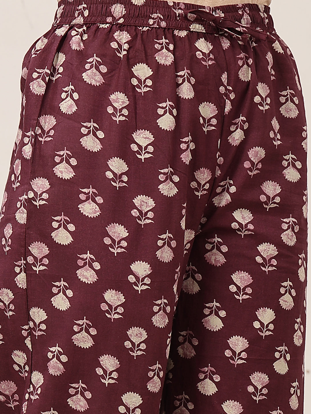 Gulmohar Jaipur Rayon Printed Flared Kurta Set in a rich purple shade. Crafted from soft and flowy rayon fabric, this calf-length kurta offers a lightweight feel and graceful drape, perfect for all-day comfort. Designed with a flattering V-neckline and a sleeveless silhouette, it features a flared shape that adds effortless movement and charm. The beautiful printed pattern enhances its ethnic appeal, making it suitable for daily wear, casual outings, or relaxed festive moments. Pair it with the matching palazzo and minimal accessories for a chic, contemporary ethnic look.