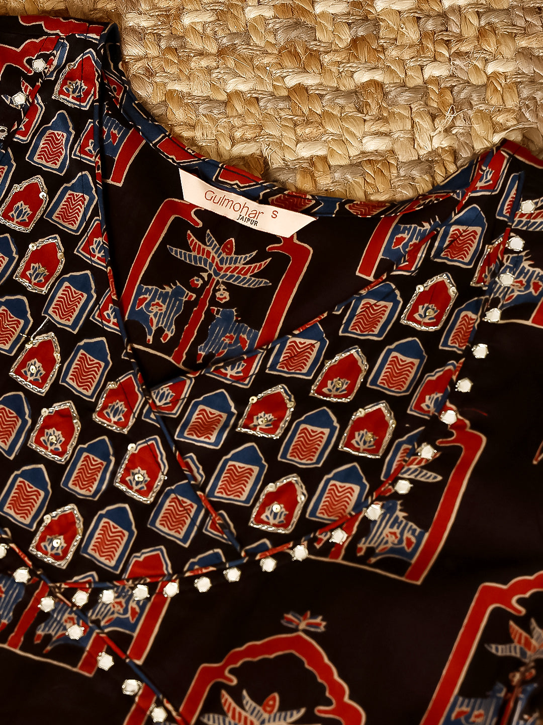 • Printed Flared Kurta: Features a vibrant print and a flattering flared silhouette for an elegant look.