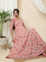Peach Floral Printed Embroidered Flared Kurta