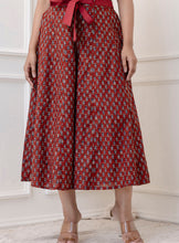 Maroon Cotton Calf Length Printed V-Neck Flared Kurta Suit Set