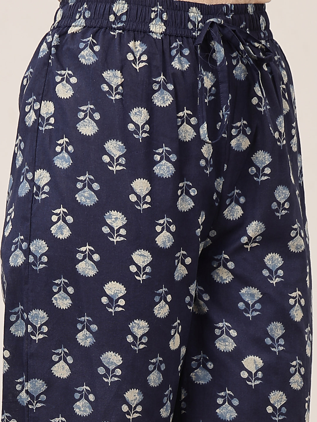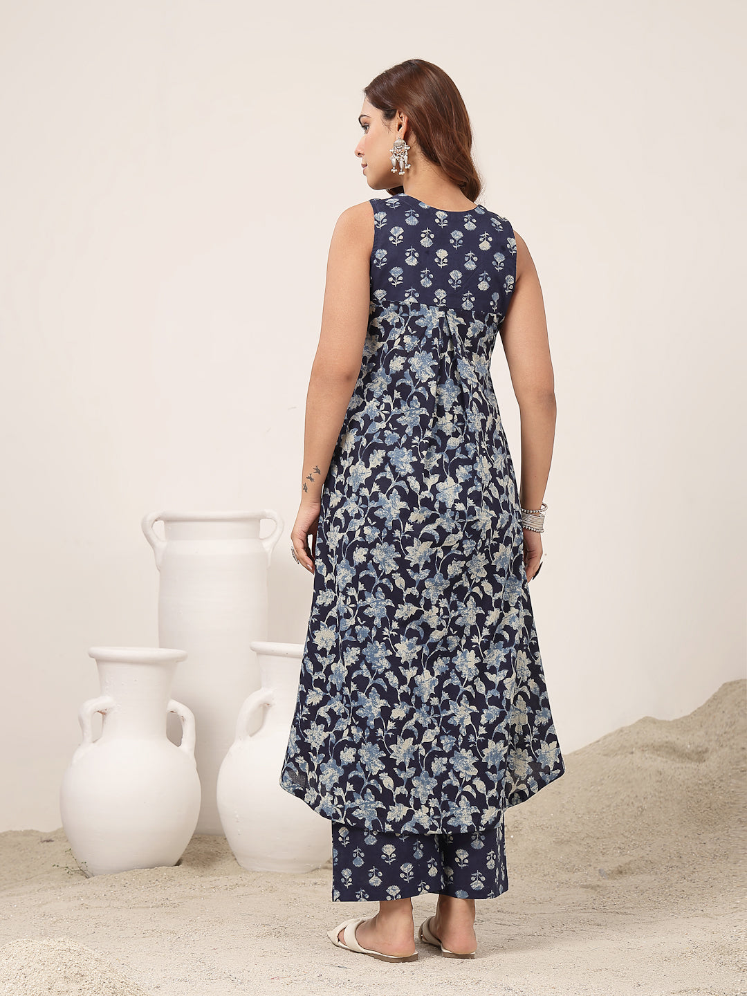Cotton Calf Length Printed V-Neck Anarkali Kurta Suit Set