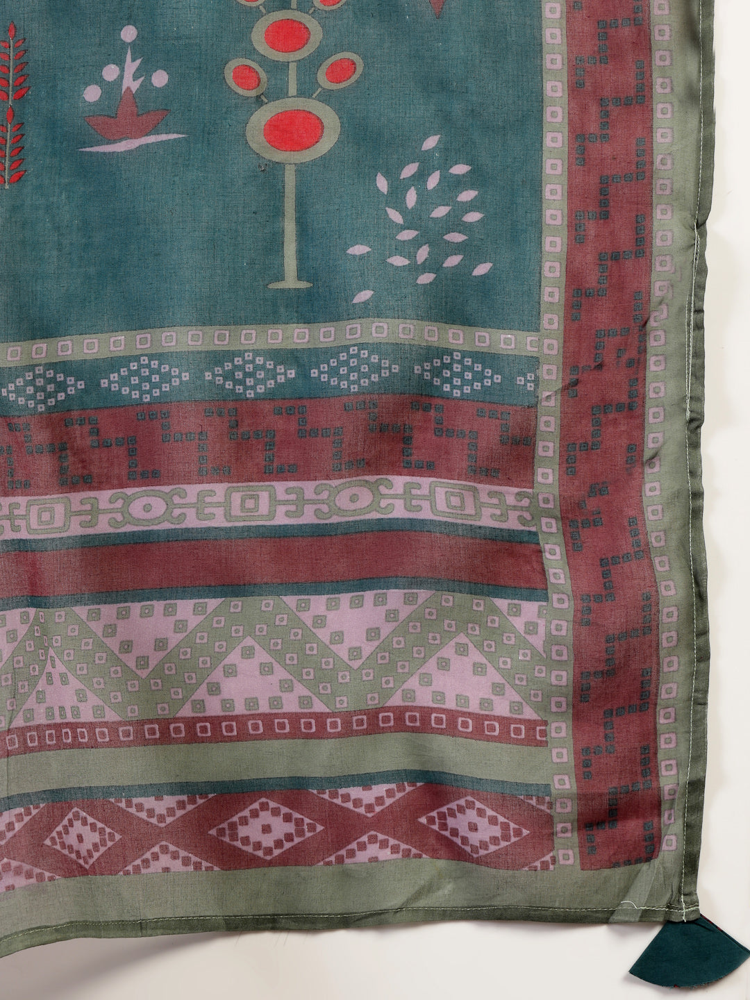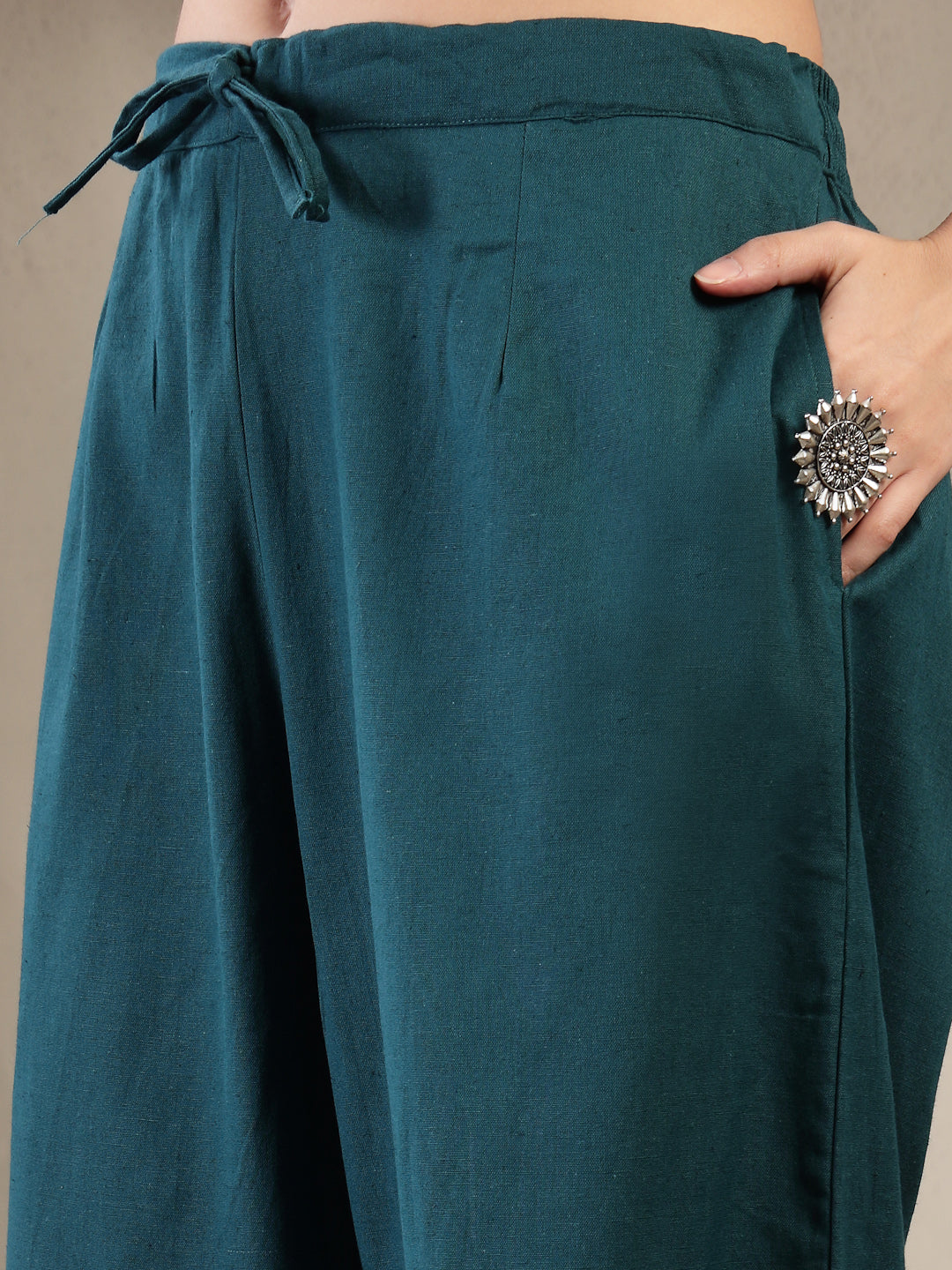Refresh your ethnic wardrobe with the Gulmohar Jaipur Rayon Calf Length Printed 3/4 Sleeves Round Neck A-Line Kurta Suit Set in a sophisticated teal shade. Crafted from soft and breathable rayon, this kurta set offers all-day comfort while keeping you stylish. The elegant printed design and A-line silhouette create a flattering, flowy fit, while the round neckline and 3/4 sleeves add a graceful, contemporary touch. Perfect for casual outings, office wear, or festive occasions, it pairs beautifully with leggings or palazzos for a complete, chic ethnic look.